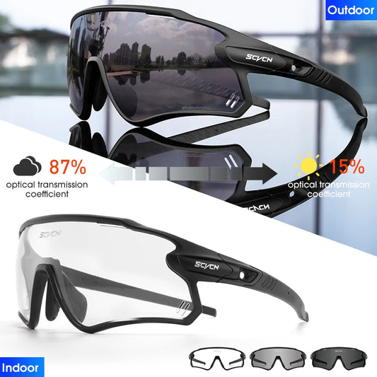 SCVCN Photochromic Cycling Glasses Outdoor Running Eyewaer Fashion Sports Bicycle Sunglasses MTB Road Bike Glasses