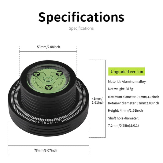 YYAUDIO Universal 50Hz LP Vinyl Record Player Disc Turntable Stabilizer with Level Aluminum Alloy Weight Clamp Music Player