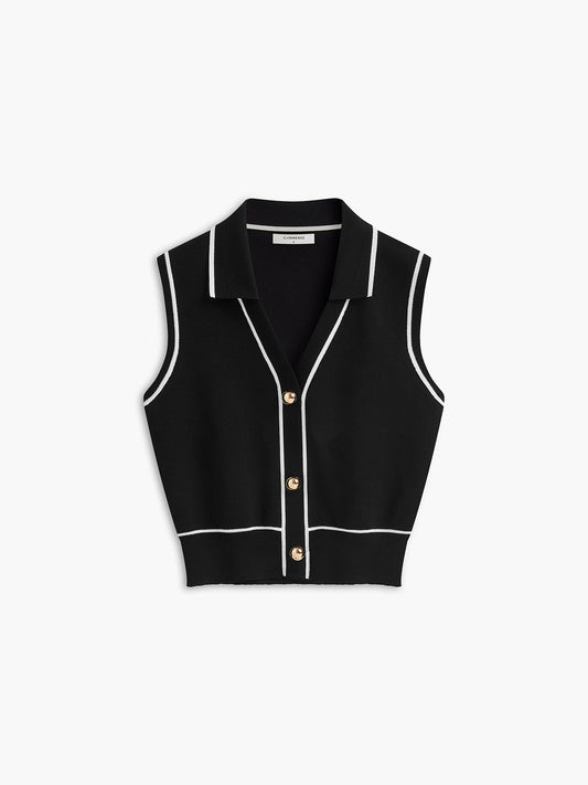 Button Front Contrast Binding Sleeveless Skirt Set