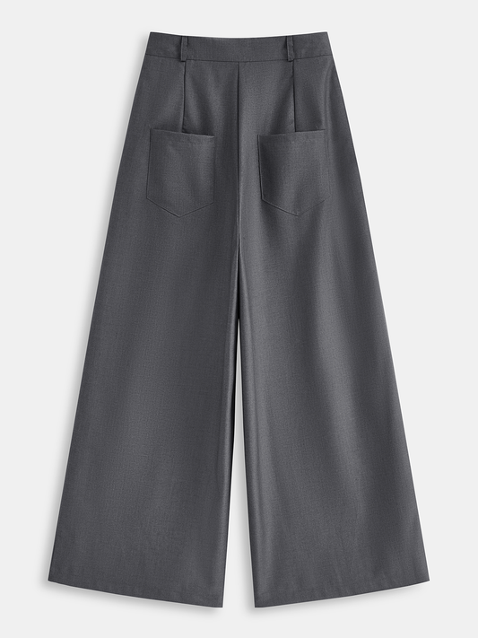 Button Front High-Waisted Wide-Leg Pants