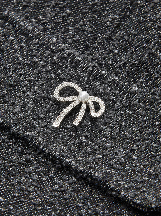 Metal Bow Denim Mini Skirt