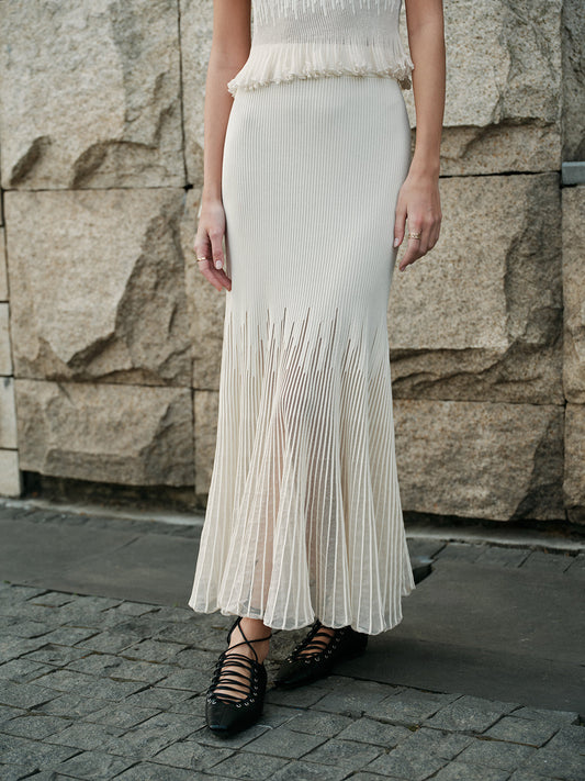 Mesh Hem Ribbed Knit Mermaid Skirt