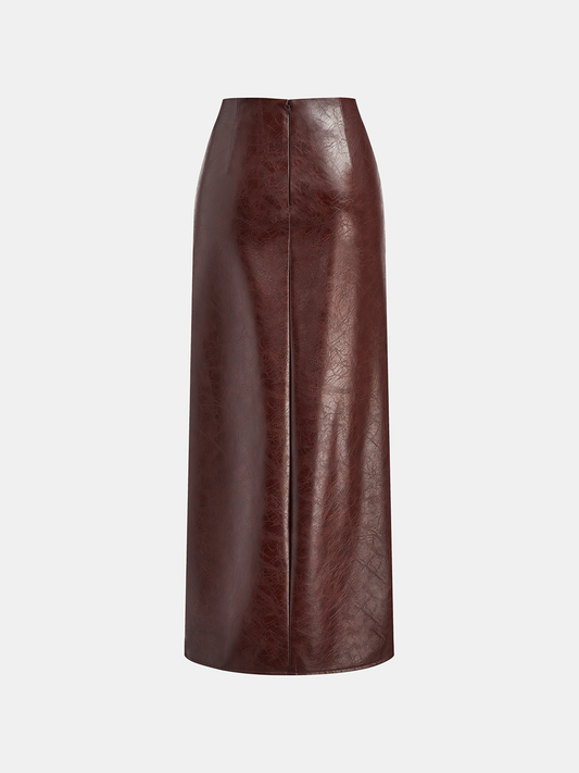 PU Leather Slit Skirt