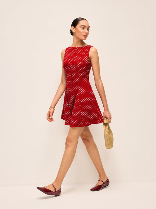 Polka-Dot Sleeveless Tie-Back Dress
