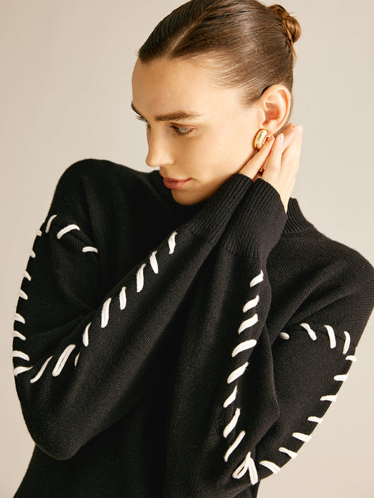 Mock Neck Pleated Panel Sweater Dress