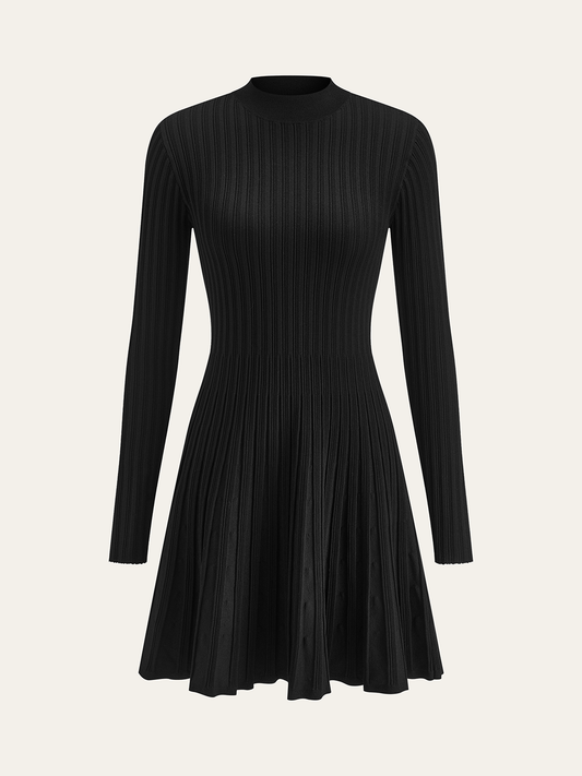Mock Neck Flared Sweater Dress