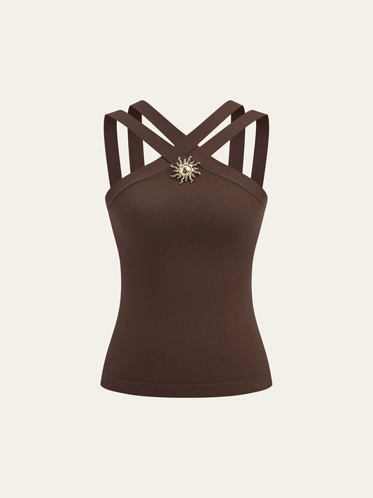 Metal Decor Cross-Strap Tank Top