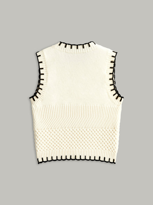 Contrast Trim Sleeveless Ribbed Sweater Vest