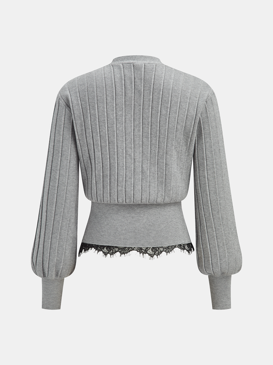 Lace Hem Ribbed Knit Cardigan