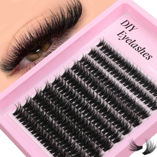 GROINNEYA Lashes Cluster Kit Fluffy Lash Bond & Seal Faux Mink Lashes Eyelash Extension Individual Lashes DIY at Home
