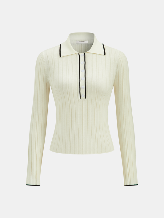 Contrast Trim Wool Blend Polo Neck Sweater