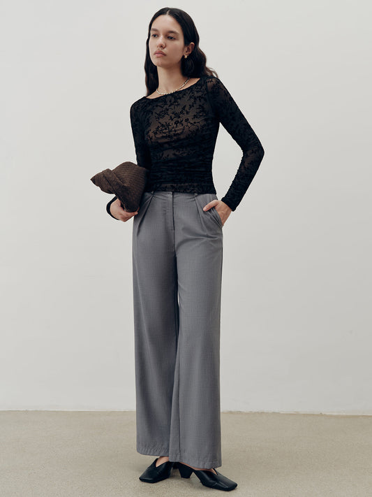 Mesh Panel Wool Blend Mock Neck Top