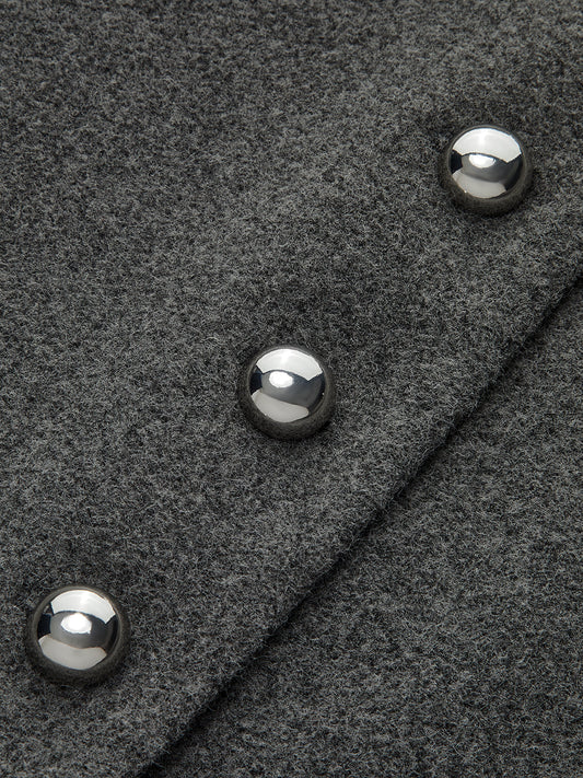 Metal Button Belted Tweed Jacket