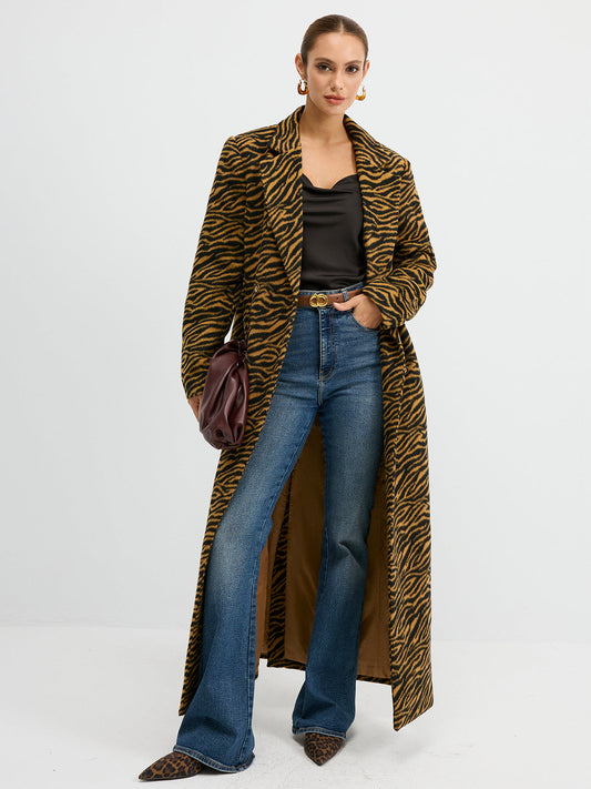 Tiger Print Oversized Tweed Long Coat