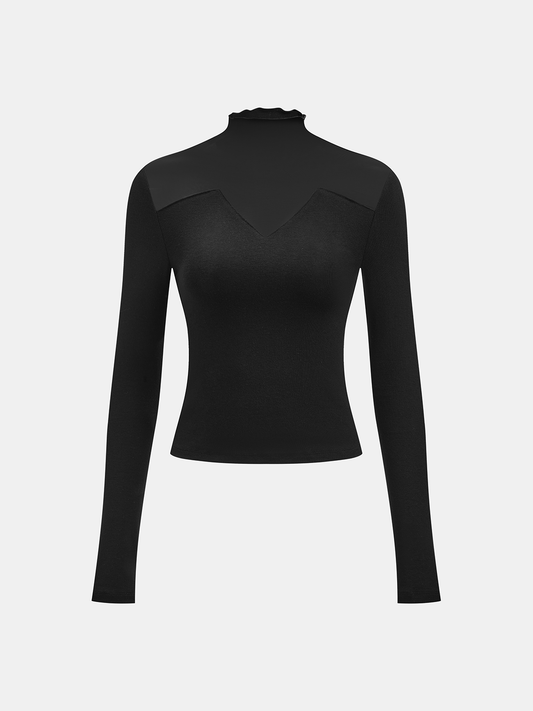 Semi-Sheer Mock Neck Long Sleeve Top