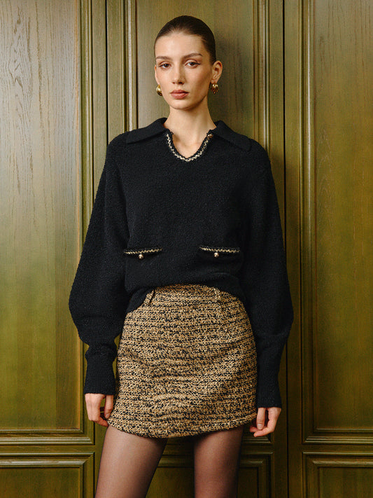 Elegant Contrast Binding Keyhole Neckline Polo Sweater