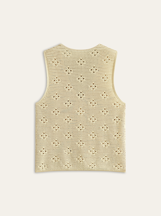 Crochet Knit Vest with Floral Detail