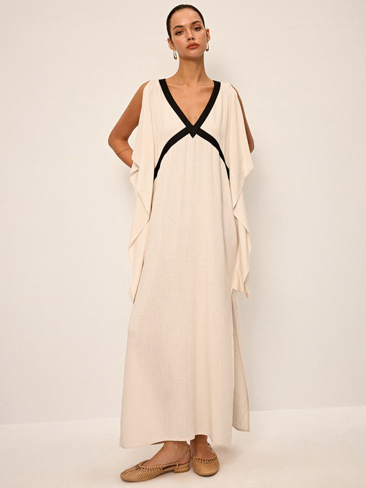 İNDİRİM 16%Contrast Trim Maxi Dress with Slit