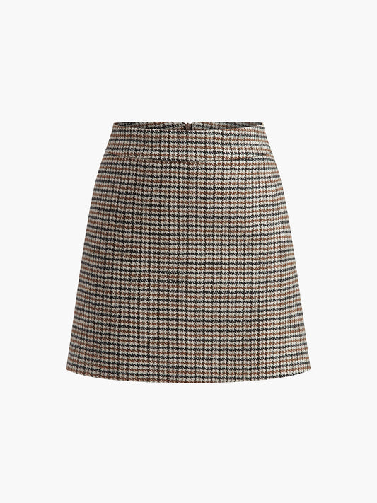 Houndstooth A-Line Mini Skirt