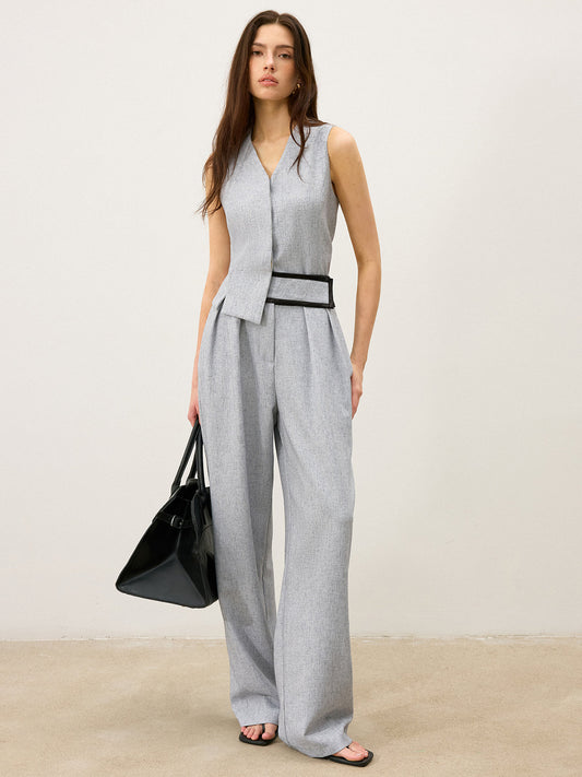 Linen Blend Button-Detail Vest