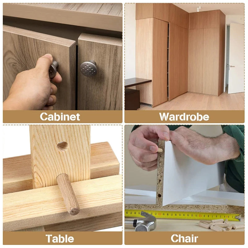 100/50pcs Wooden Dowel Cabinet Drawer Round Fluted Wood Craft Dowel Pins Rods Set Furniture Fitting wooden dowel pin