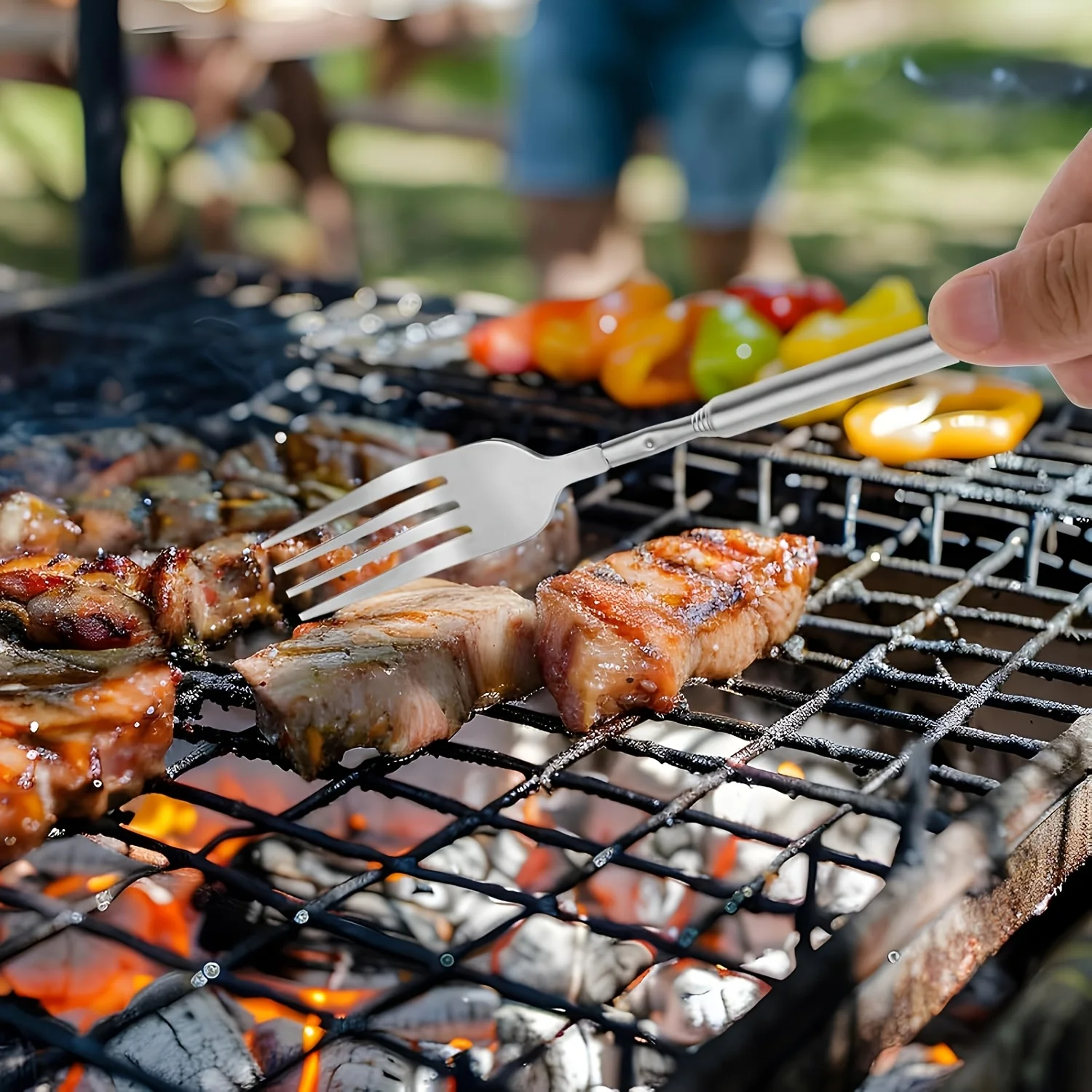 1pc Expandable Stainless Steel Fork- 8.7 To 25.4 Inches, Adjustable Length for BBQ, Durable and Portable Design