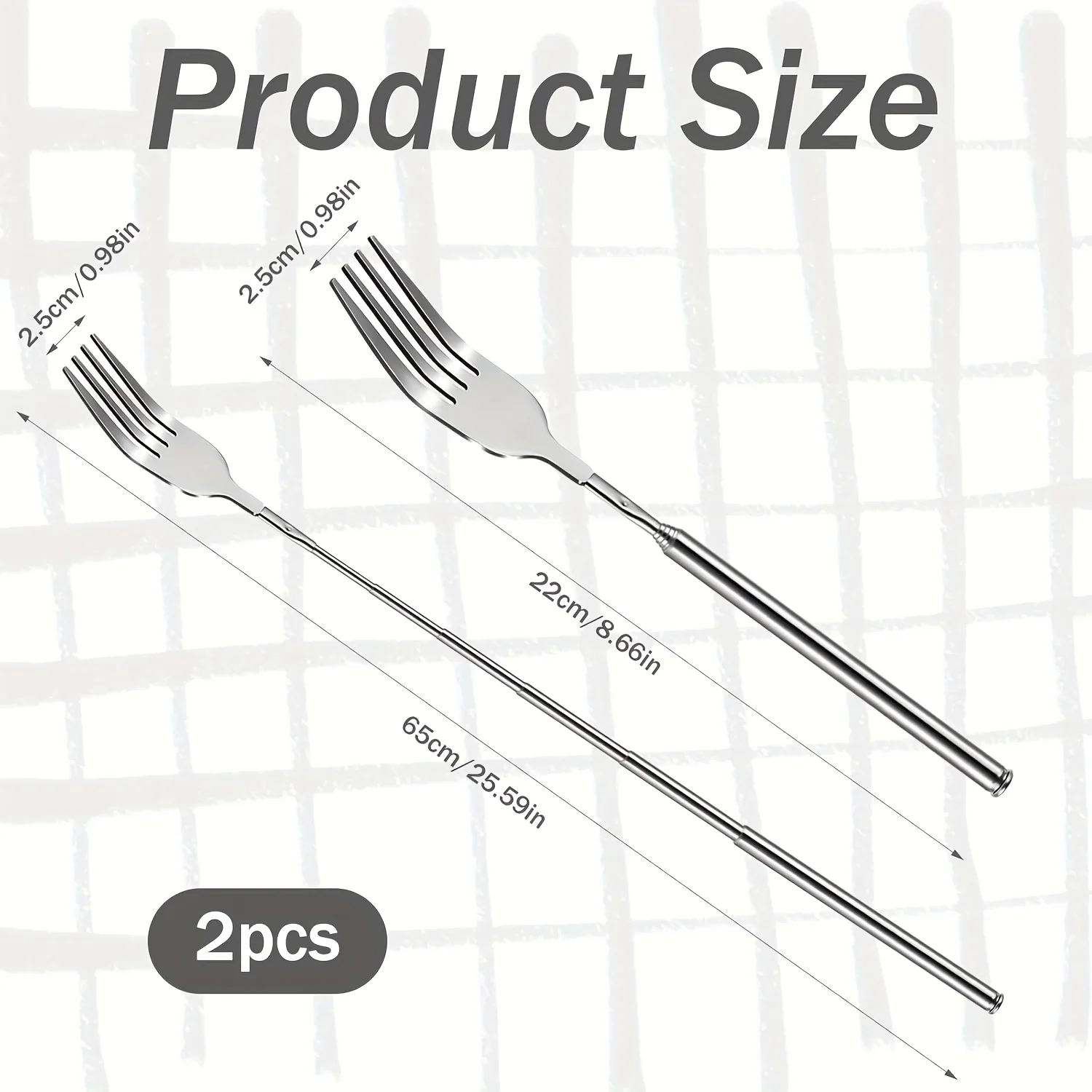 Retractable Fork - The fork is designed with a retractable handle. The length is adjustable to 22.1-64.6 cm/8.7-25.4 inches. We can adjust the length of the telescopic fork as needed.