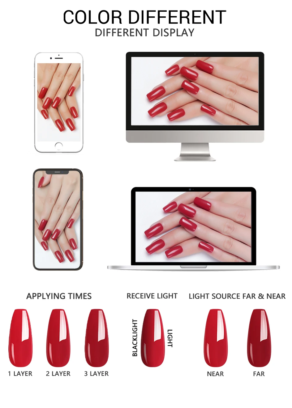 Suitable to apply on UV gel nails, Acrylic nails and natural nails etc.