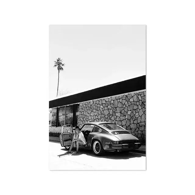 Beach Camper Van Surfing Ocean Landscape Wall Art Palm Tree Surfboard Canvas Painting Home Room Decor Poster Prints