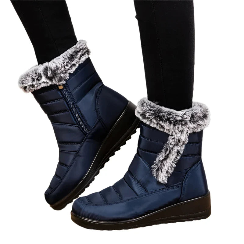 Waterproof Women's Winter Snow Boots 2024... Featuring a warm faux fur lining and thick plush padding, these ankle boots are designed for ultimate comfort and warmth. The non-slip rubber outsole ensures stability in winter conditions, making them perfect for outdoor activities.
