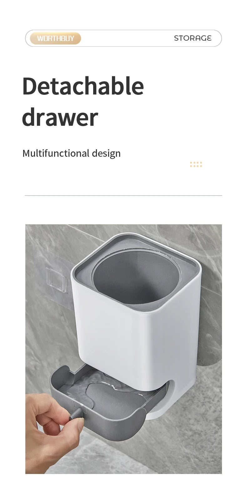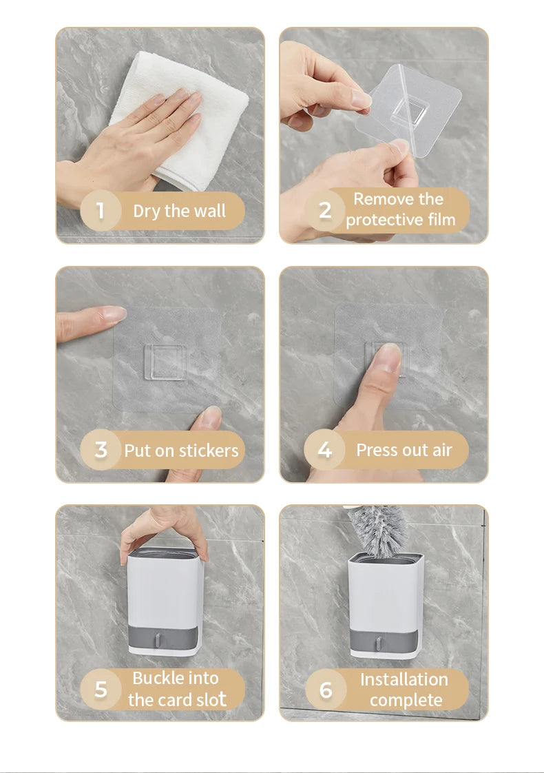 WORTHBUY Long Handle Plastic Toilet Brush With Drain Base Punch-Free Wall Mounted WC Toilet Cleaning Brush Bathroom Accessories
